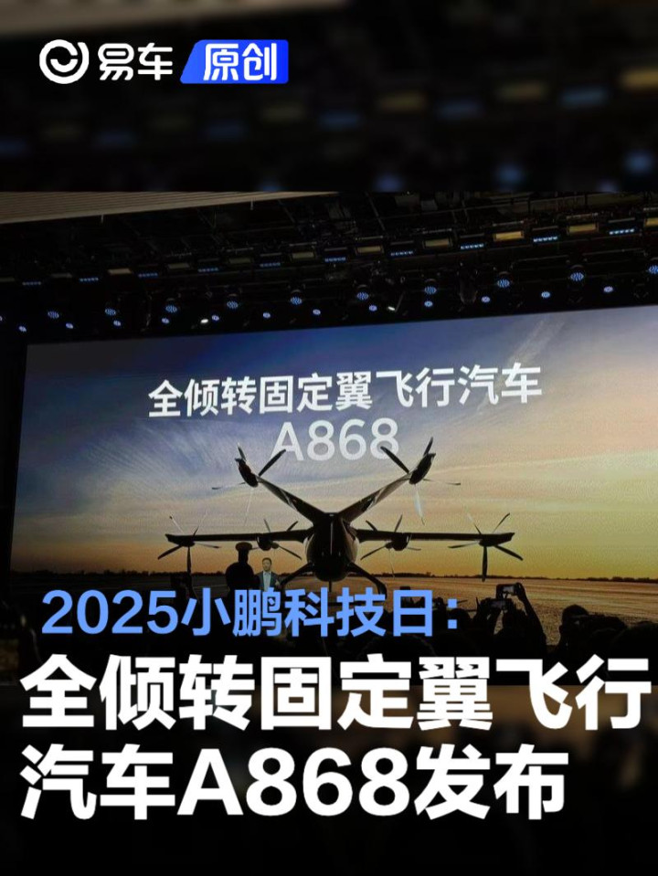 易车讯11月5日,在2025AIDAY小鹏科技日上,小鹏汽车发布全倾转固定翼飞行汽车A868,目前已经进入试飞阶段。