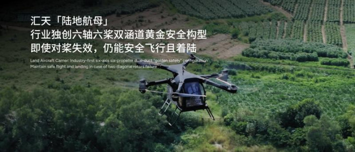 全球首款量产飞行汽车「陆地航母」,其综合续航里程CLTC超过1000公里,预计2026年规模化交付,全面对标最高飞行安全标准,实现全域安全冗余;行业独创六轴六桨双涵道黄金安全构型,即使对桨失效,仍能安全飞行且着陆。