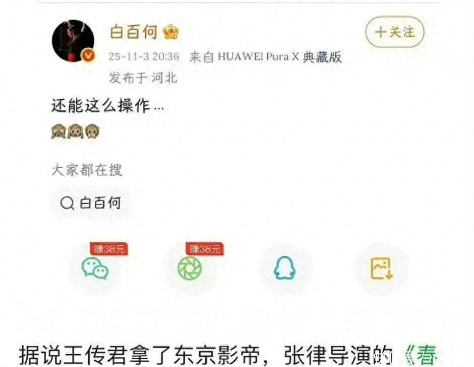 还能这么操作?11月3日,身在河北的白百何发出这条微博,配上三个捂眼捂耳捂嘴的表情包,瞬间点燃了东京电影节的一连串争议。随后,她在朋友圈写下的“得鱼忘筌”四字,更是将这场风波推向高潮。